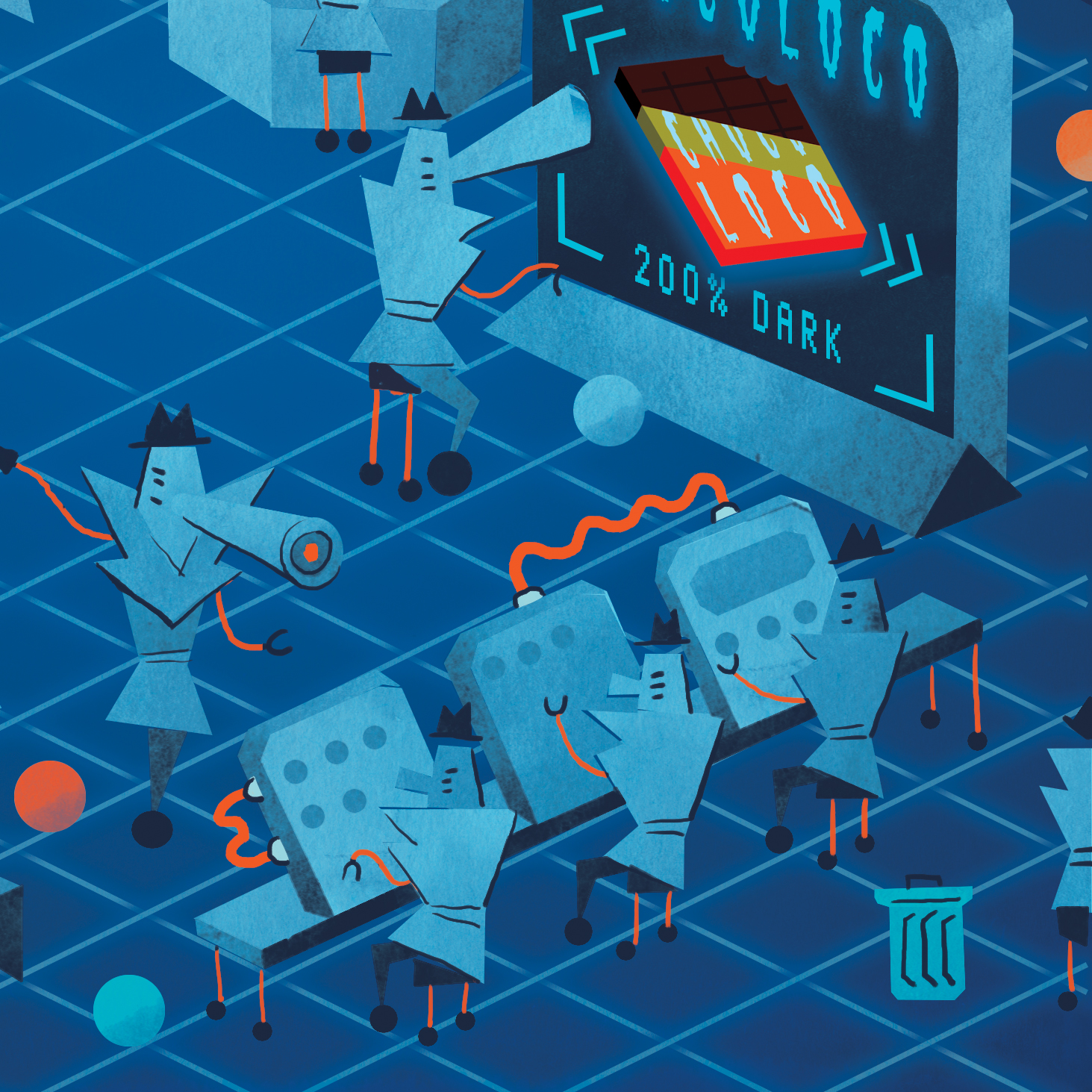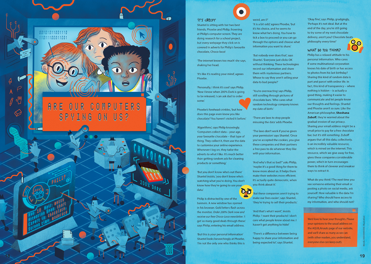 Illustrations for a feature on algorithms, tracking and internet safety.